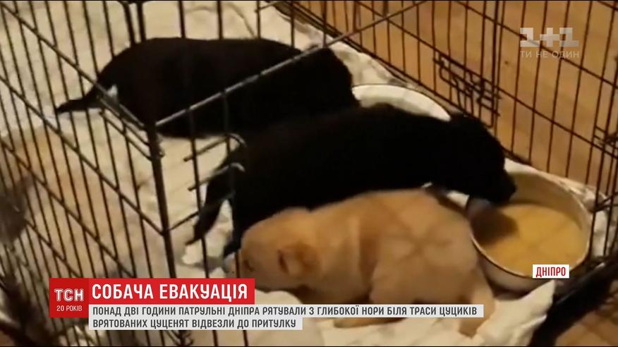 У Дніпрі патрульні понад дві години рятували цуценят із нори