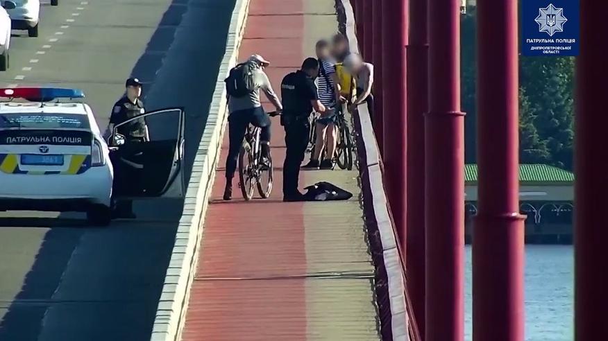 У Дніпрі патрульні отримали виклик про те, що жінка має намір стрибнути з Центрального мосту. Прибувши на місце, правоохоронці з'ясували, що жінка залишила передсмертну записку. Під час розмови з дніпрянкою копам вдалося її відволікти і стягнути з перил на міст. Джерело: Патрульна поліція Дніпропетровської області