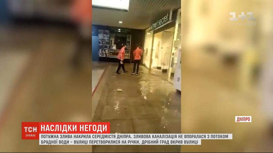 У Дніпрі потужна злива з градом залила ТРЦ