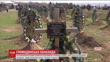 На Алеї героїв на Краснопільському цвинтарі провели громадянську панахаду. Саме тут від 2014 року ховають загиблих воїнів, яких не вдалося одразу опізнати. Загалом тут майже три з половиною сотні бійців. В кожного брали зразок ДНК, за результатами експертиз та збігом даних з родичами вже вдалося встановити імена більшості. Проте 113 похованих і досі вважаються невідомими.