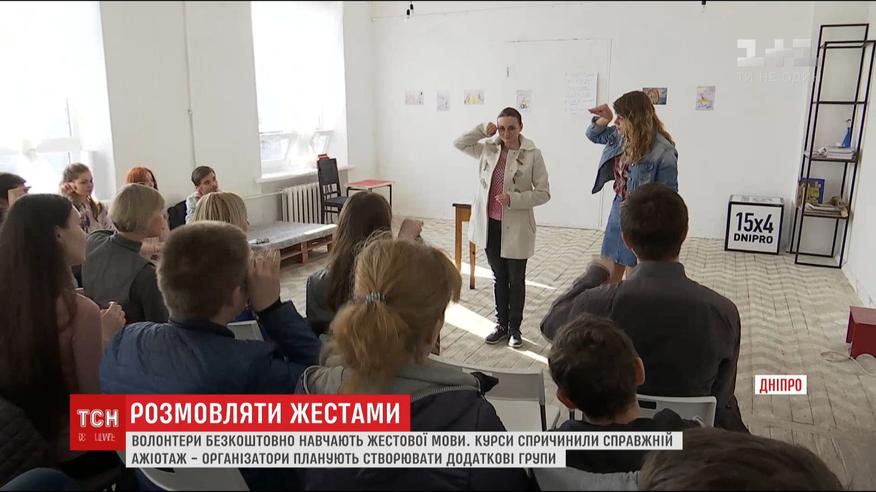 Відтепер у Дніпрі навчитися спілкуватися нею може будь-хто охочий. Курси, яких досі тут ніколи не було, волонтери започаткували безкоштовно. І тепер там справжній ажіотаж - розмовляти руками йдуть учитись і медики, і вчителі, і навіть підприємці.