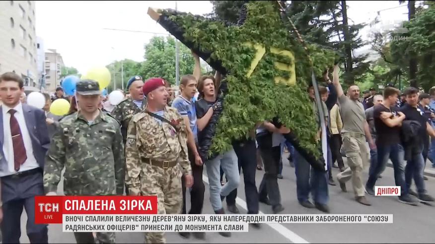 У Дніпрі знищили зірку, встановлену "Союзом радянських офіцерів" біля монумента Слави