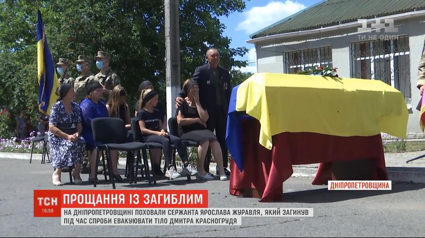 У Дніпропетровській області поховали сержанта Ярослава Журавля, який загинув під час спроби евакуювати тіло свого командира Дмитра Красногрудя. Він підірвався в "сірій зоні" під час повернення до бригади. Цього тижня ворог віддав мертвого 30-річного розвідника. В останню путь бійця проводжали в його рідному селі Водяному, куди з'їхалися бойові товариші, з якими сержант Журавель служив із перших днів війни.