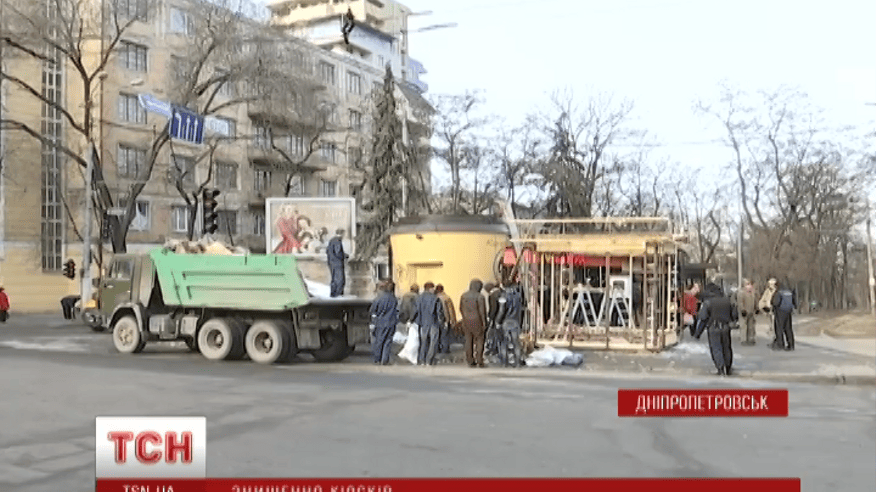 У Дніпропетровську зранку почали прибирати незаконні кіоски