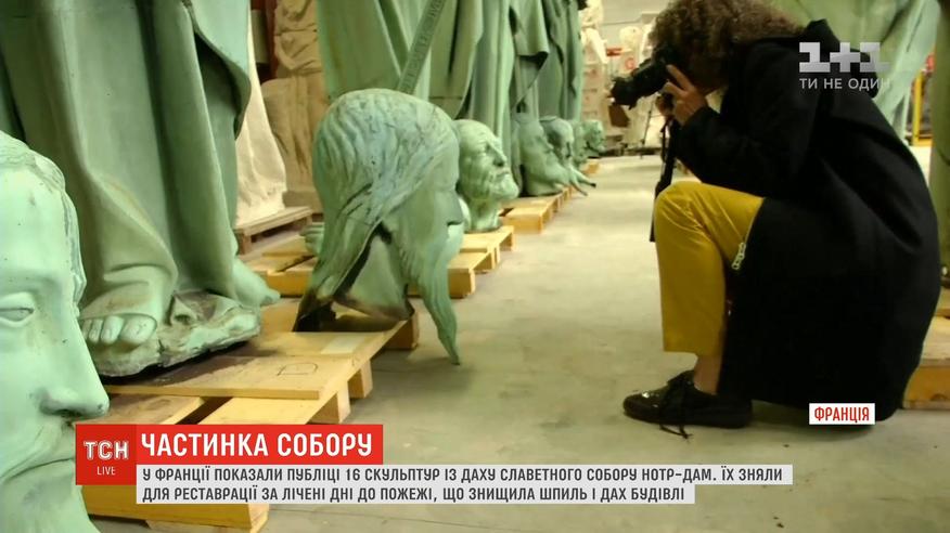 16 скульптур півтора століття прикрашали дах храму. Звідти їх устигли зняти для реставрації незадовго до того, як будівлю охопило вогнем. Поки процес відновлення не розпочався, скульптури вирішили зробити доступними для публіки. Виставляють їх щосуботи, а подивитися можуть лише 25 щасливців.