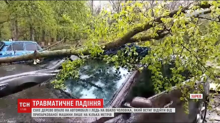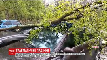 У Харкові на автомобілі впало дерево і ледь не вбило чоловіка