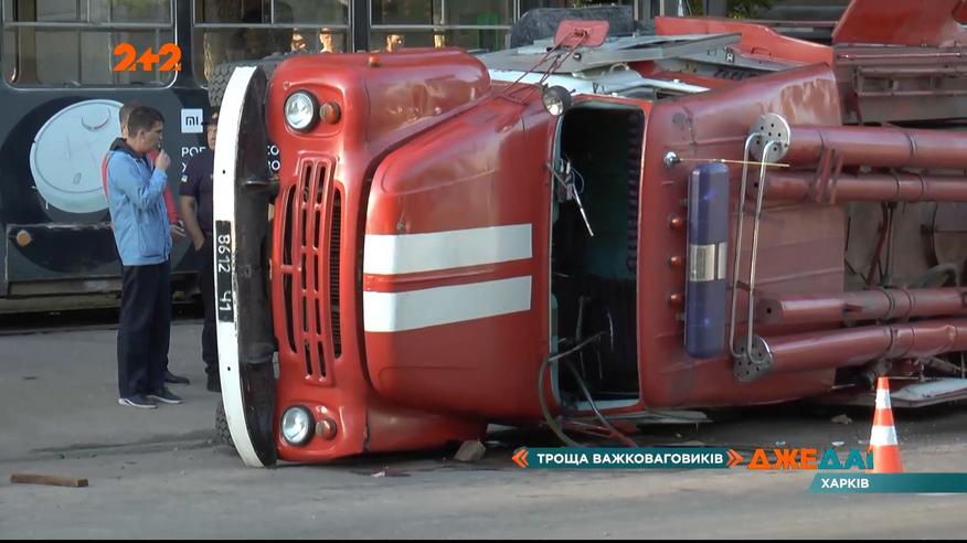 Від удару пожежна машина перекинулась на бік, а разом із нею четверо людей, що їхали у салоні. Дивом, ніхто не постраждав. Як водії не помітили одне одного - не зрозуміло. Повні випуски дивіться на 1+1 video
