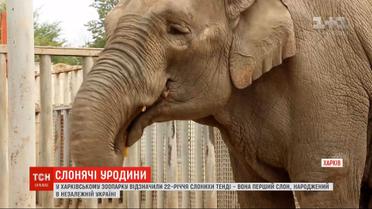 У харківському зоопарку із двадцять другим днем народження вітали Тенді. Побажання слонисі співробітники звіринцю написали крейдою просто на дереві посеред вольєру і пригостили святковим десертом. До Харкова азіатська слониха приїхала з Одеси двадцять років тому - тоді була ще геть малою - півтора метри заввишки та завважки лиш 800 кілограмів. Тепер же - важить аж три тонни. Свого часу поява Тенді на світ стала сенсацією - адже вона перший слон, народжений в незалежній Україні.