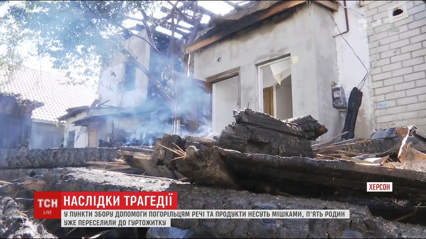Їх ховатимуть завтра. А батько родини і далі у реанімації у вкрай тяжкому стані. Мешканцям першого поверху нині дозволили зайти у свої квартири і забрати речі. Другий - вигорів вщент. П'ять родин, які сказали, що не мають де жити, вже переселили до гуртожитку. Для погорільців у місті зорганізували три пункти збору допомоги. Херсонці вже знесли туди масу речей і продуктів.