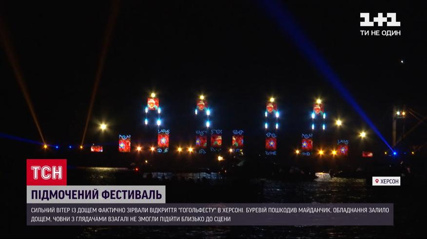 Сильний вітер із дощем фактично зірвали відкриття "Гогольфесту" в Херсоні. Фестиваль мав розпочатися грандіозним концертом гурту "Даха Браха". Сцену у вигляді корабля змонтували на мосту в гідропарку. Глядачі мали дивитися концерт із човнів та катерів, дотримуючись дистанції. Проте, за годину до початку шоу буревій пошкодив сцену, а обладнання залило дощем. Плавзасоби з глядачами через сильний вітер узагалі не могли підійти близько до сцени. Доки настроювали апаратуру, глядачі здалеку бачили світлове шоу під фонограму, але без артистів. Урешті, організатори концерту оголосили фестиваль відкритим та вибачилися за форс-мажор.