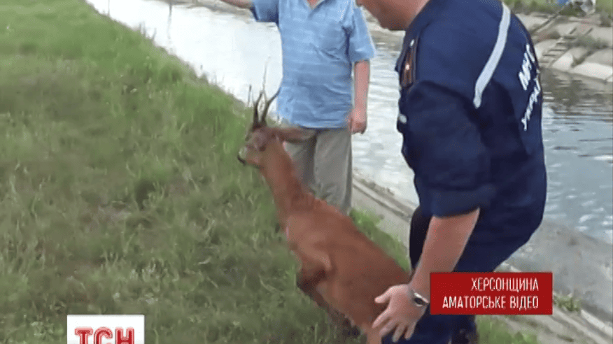 Трирічний самець упав у зрошувальний канал двометрової глибини. Вочевидь, його замучила спрага. Це сталося в Новотроїцькому районі поблизу помпової станції місцевого водного господарства. Тварину, що потрапила в пастку, помітив голова Товариства мисливців і покликав на допомогу.