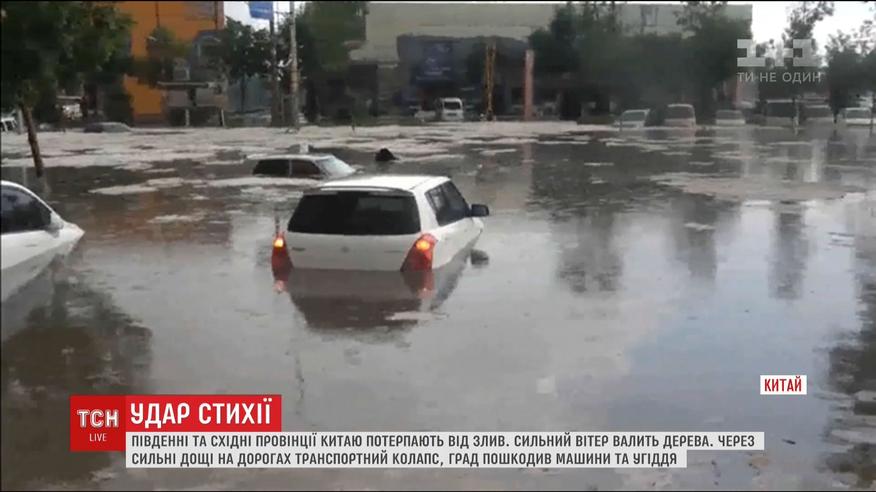 Негода вдарила у південних та східних провінціях Китаю. У Хенані потужний вихор повалив дерева просто на дороги. Через зливи та сильний вітер у багатьох містах транспортний колапс. У місті Чіфен зливи буквально перетворили вулиці на річки. В одному з районів висота води сягнула півтора метра та затопила машини.