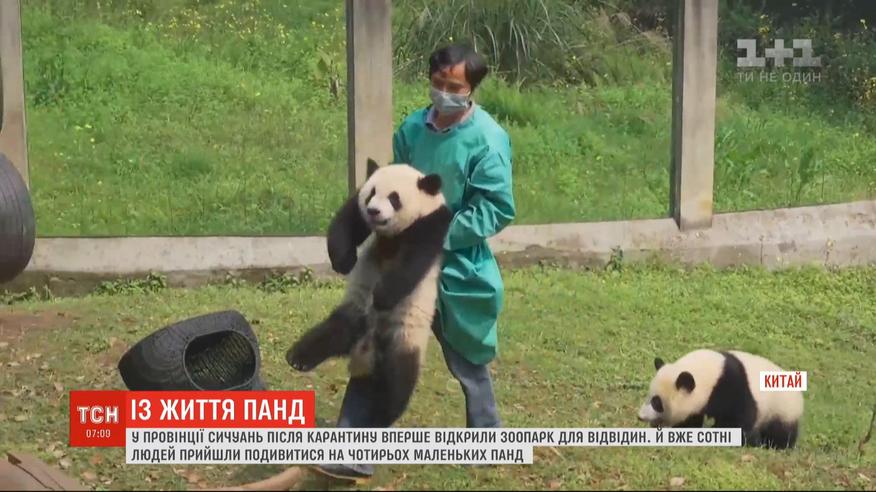 Тільки-но епідемія вірусу вщухла, як у Китаї знову уся увагу прикута до кумедних чорно-білих ведмежат. У центральній провінції Сичуань вперше за два місяці відкрили звіринець для відвідувачів. Там чотири малюки панди влаштували справжнє шоу.