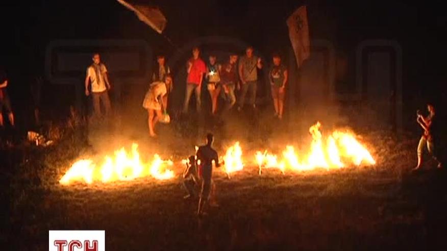 Напередодні дня розгляду законопроекту, в середу ввечері, активісти виклали з палаючих літер слово "люстрація".