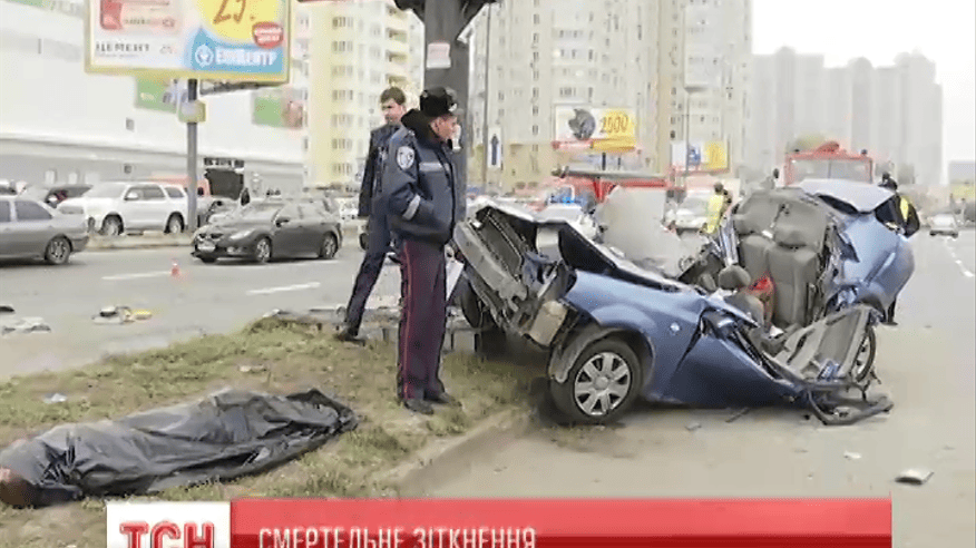 Шевроле Лачетті, зареєстрований у Київській області, перетворився на брухт. 26-річний водій рухався в бік Борисполя. Раптом його винесло з правої смуги в ліву і вдарило об бордюр. Зіткнення було таким потужним, що машину обкрутило навколо стовпа. Кермувальник загинув на місці. Уламки авто розкидало в радіусі 50 метрів.