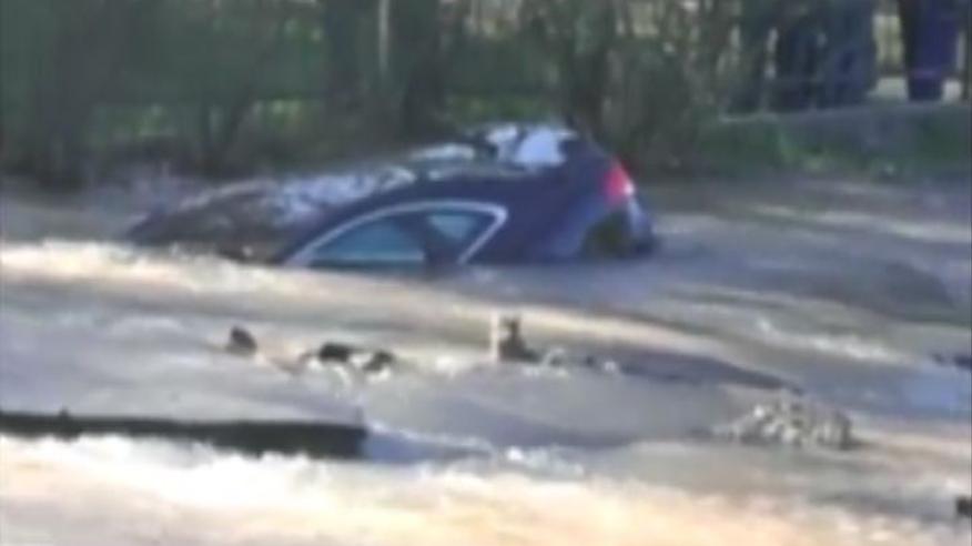 У Києві автомобіль провалився під асфальт