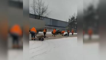 У Києві в Бортничах комунальники укладали асфальт поверх снігу. їхні дії зафільмували місцеві мешканці та оприлюднили запис у соцмережі. На ньому видно, як робітники латають ями після снігопаду
