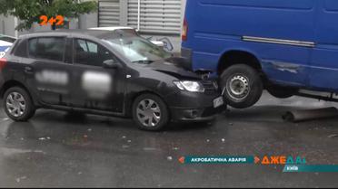 У столиці сталась незвичайна ДТП, в якій взяли участь три водії. Один з них каже, що раніше бачив таке тільки в кіно. Чоловік спокійно стояв на світлофорі аж раптом з неба на нього прилетів мікроавтобус. У таких деталях трощі швидко не зуміли розібратися навіть правоохоронці. Повні випуски дивіться на 1+1 video