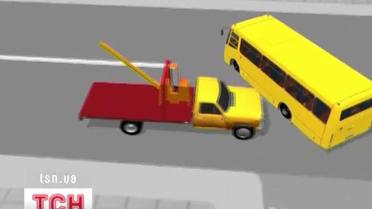 Маршрутка виїжджала на шосе з перпендикулярної вулиці і повертала ліворуч, ставши на шляху евакуатора.