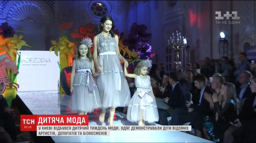 На дитячому тижні моди дехто виходив сам, а дехто – із зірковими батьками за руку. Телеведуча Валентина Хамайко вийшла у схожих сукнях зі своїми доньками. Серед брендів були представлені як західні, так і українські. Батьки кажуть, малечу на подіум водять задля красивих світлин.