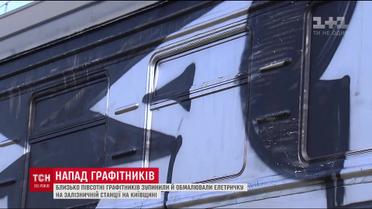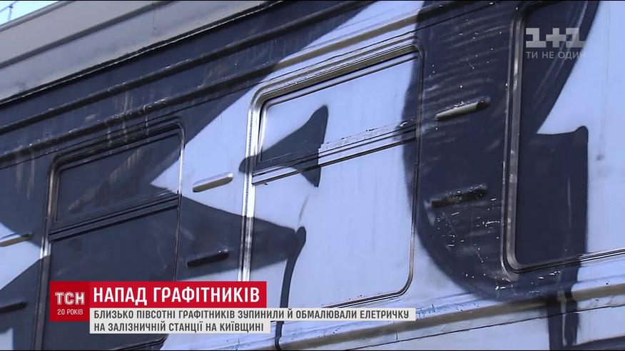У Києві невідомі молодики з битами зупинили та розмалювали електричку
