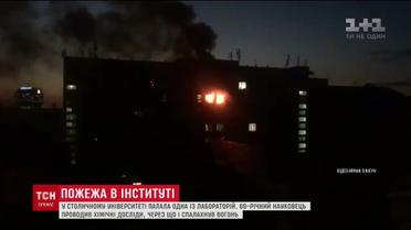 Зайнялося ввечері на 8 поверсі, стовп диму було видно за кілька кілометрів. Приборкати полум'я, яке охопило одну з лабораторій, рятувальникам вдалося менш ніж за годину. Під час пожежі вогнеборці врятували 69-річного чоловіка. У самому навчальному закладі твердять, що він - вчений. А вогонь спалахнув коли той проводив лабораторні дослідження.