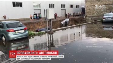 У Києві під двома автомобілями обвалилася земля внаслідок потужної зливи