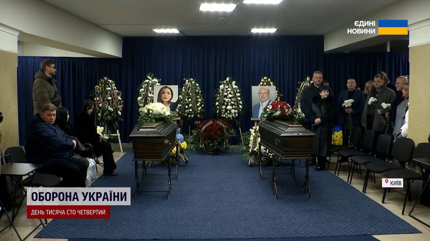 Сьогодні попрощалися з Тетяною Кулик та Павлом Іванчовим. Журналістка та відомий лікар-хірург загинули минулої середи внаслідок прямого влучання ворожого безпілотника в їхній будинок на Київщині. Траурна церемонія відбулась у фізико-хімічному корпусі національного медичного університету імені Богомольця. Саме тут працював Павло Іванчов - викладав студентам та очолював кафедру хірургії. Його дружина Тетяна була журналісткою агенції Укрінформ, авторкою та ведучою програми «Нація непереможних». Попрощатися з загиблими прийшли колеги, студенти та знайомі. Поховають загиблих на Байковому цвинтарі.
