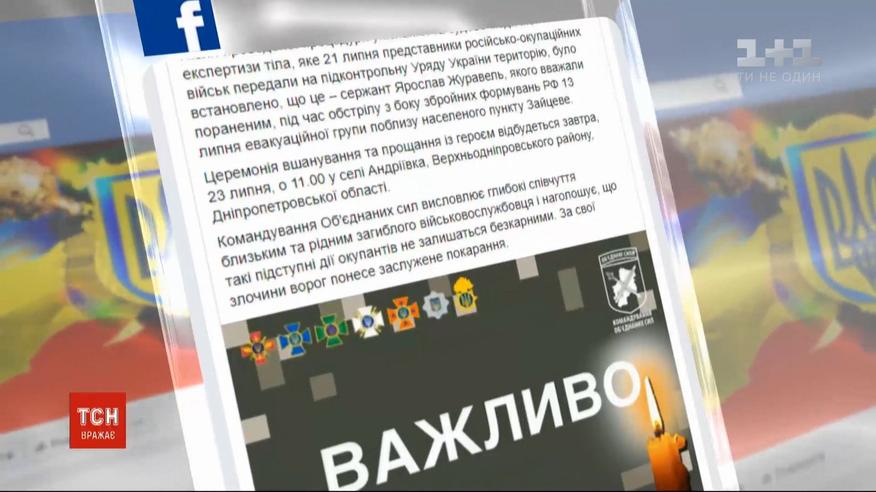 Стало відоме ім’я ще одного українського військового, загиблого під Зайцевим Донецької області. Судмедексперти встановили: це розвідник 137-го батальйону морської піхоти, сержант Ярослав Журавель. Він був одним із дев'ятьох військових із евакуаційної групи, яка 13 липня висунулася в сіру зону, щоби забрати тіло лейтенанта Дмитра Красногрудя. Попрощаються з бійцем в рідній Андріївці Дніпропетровської області 23 липня. Йому було 40 років, удома на нього чекали дружина та двоє доньок.
