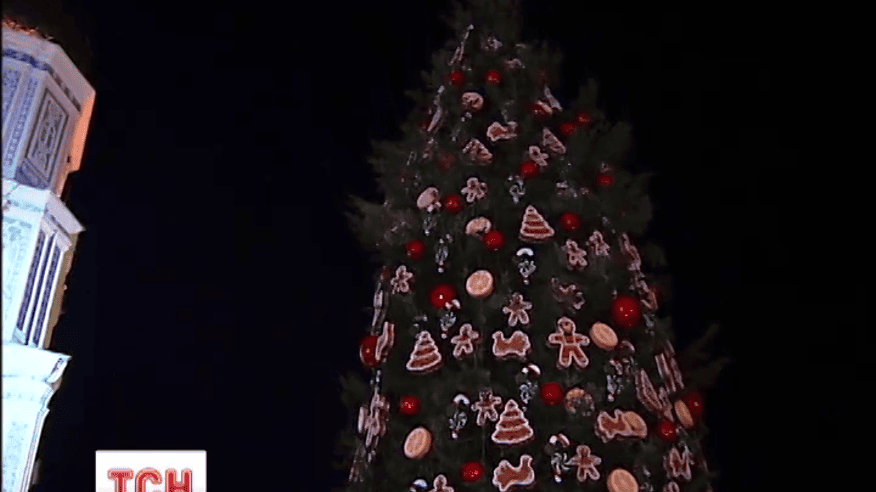 Прикрас на святковому дереві близько тисячі. Залишилося тільки увімкнути ілюмінацію. Імбирні пряники, величезні яблука, шматки апельсинів і цукерки - оздобу для першої різдвяної красуні цьогоріч обирали всі охочі відкритим голосуванням на сайті новорічного містечка. Організатори певні - ці прикраси якнайкраще здатні створити на Софійській площі атмосферу свята, і коштували столиці 29 тисяч гривень. Головна ялинка столиці спалахне святковими вогнями на Миколая 19 грудня о сьомій вечора.