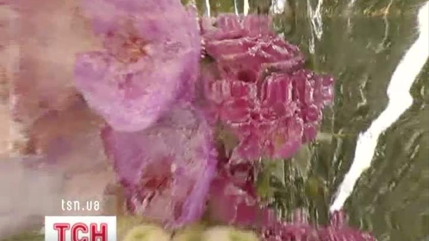 Для цього десять квіткових композицій київські флористи готували цілий місяць - заморожували у воді в спеціальних морозильних камерах, щоби врешті рослини залишились неушкоджені і виглядали як живі.