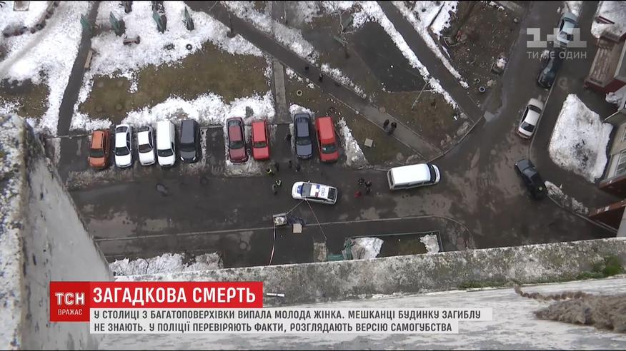 Молода жінка випала з багатоповерхівки. Тіло знайшли надвечір у спальному районі. Падіння ніхто не бачив. А на спільному балконі 16 поверху знайшли речі загиблої, із документів - лише картку донора. Мешканці дому загиблу не знають.