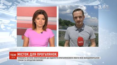 Міст з'єднає Володимирську гірку із Хрещатим парком. Офіційне відкриття призначили на День міста. Чи можна вже прогулятися між київськими пагорбами – у сюжеті.