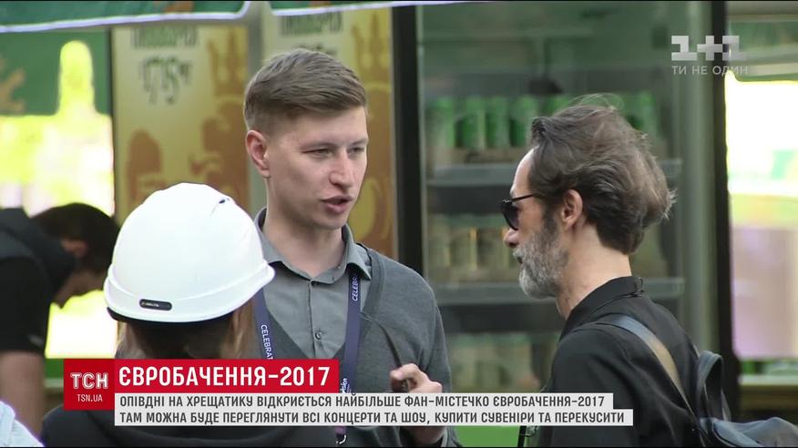 Напередодні Євромістечко презентували журналістам, репортери фактично побачили закінчення монтажу фан-зони. Величезна сцена, на якій транслюватимуть всі концерти та репетиції, вже встановлена. А от місця для фотографування, ятки з наїдками та лавочки ввечері закінчували монтувати. Потрапити всередину Євромістечка можна буде через рамки металошукачів.