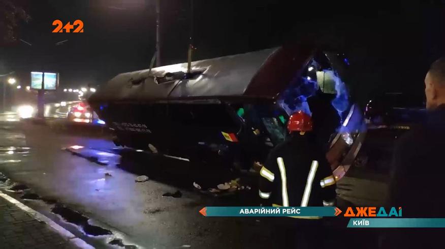 У Києві водій автобуса з 50 пасажирами не впорався з керуванням і перетворив транспорт на брухт