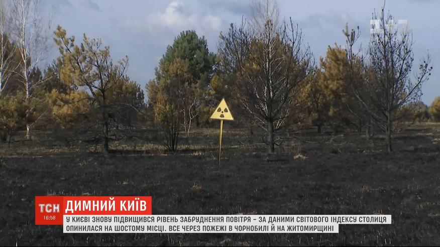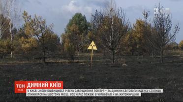 У Києві знову нема чим дихати. Рівень забрудненості - шостий у світі. На ранок вітер приніс смог з Чорнобильської зони та Житомирської області. У ДСНС повідомляють, що там досі борються з лісовими пожежами. У цих пожежах правоохоронці підозрюють паліїв.
