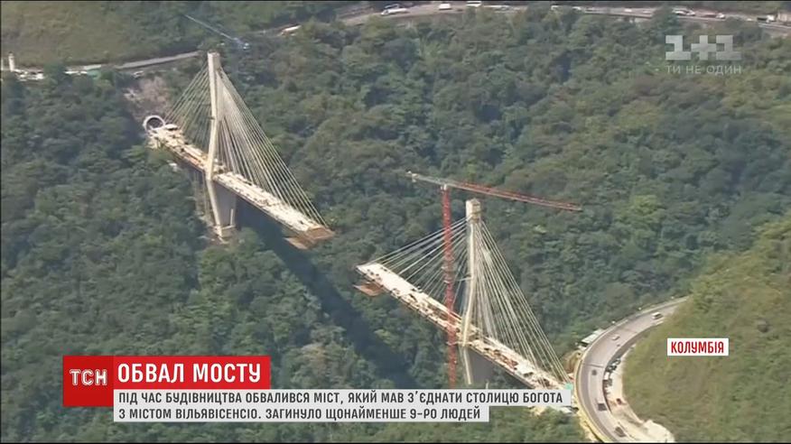 У Колумбії обвалився міст, який вже за кілька місяців мали здати в експлуатацію. Загинуло дев’ятеро людей. Ще п’ятеро – шпиталізовано. Усі жертви та постраждалі – будівельники, які зводили міст. Рятувальні роботи тривають.