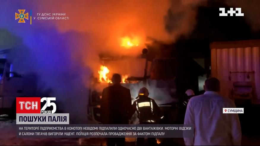 На території місцевого підприємства вихідними спалахнули дві вантажівки. Зайнялися одночасно. Поки охоронець обходив територію - невідомі розбили вікна автівок та закинули займисту суміш у кабіни. Надзвичайники прибули за лічені хвилини, та моторні відсіки й салони тягачів вигоріли ущент. Рятувальники відбили від вогню ще одну фуру, що стояла між охоплених вогнем автівок та решту машин по обидва боки від осередків займання. Поліція розпочала провадження за фактом підпалу, обставини пожежі з'ясовують.