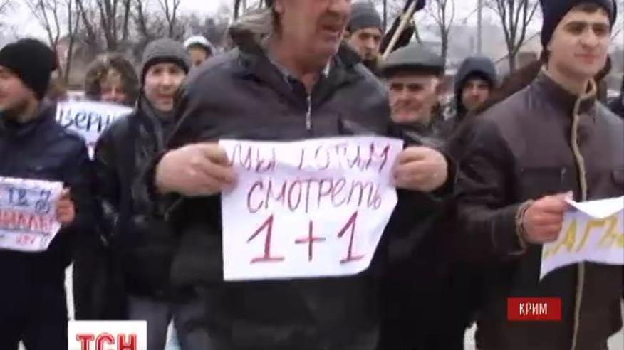 У Криму щодня збираються антивоєнні мітинги. Одна з нових вимог людей - повернути в ефір українські телеканали.