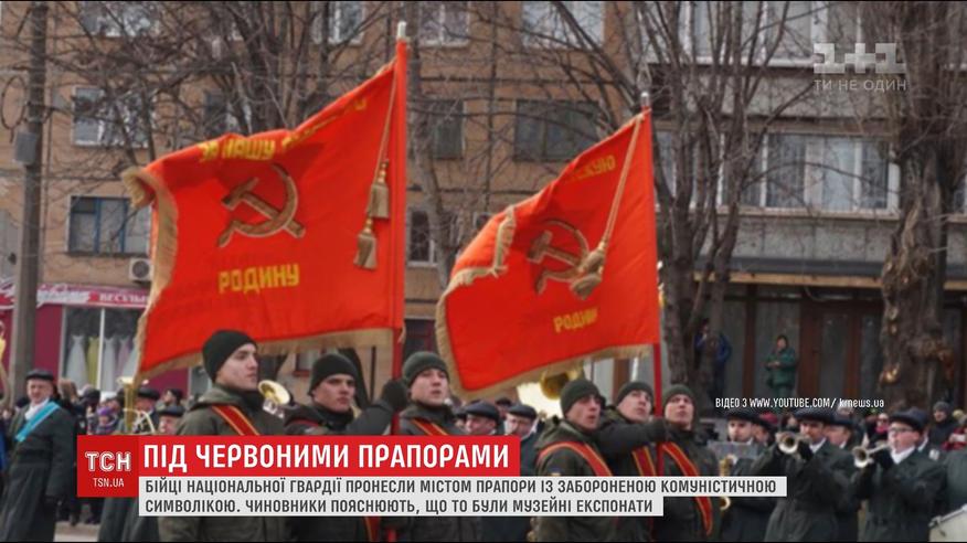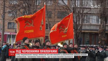 У Кривому Розі нацгвардійці під час параду йшли з комуністичними прапорами