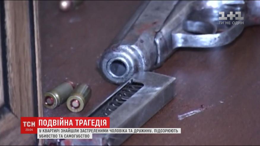 Бездиханні тіла чоловіка та дружини виявив син загиблої. На кухні поліцейські знайшли поруч із тілами пістолет Макарова, кілька патронів та стріляні гільзи. Вогнестрільних поранень чоловік та жінка зазнали в скроні. Сусіди твердять, нічого не чули.
