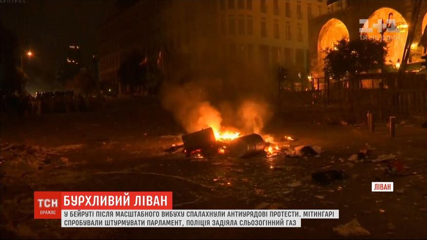 Сутички та спроба штурмувати парламент. У Ліванській столиці після масштабного вибуху спалахнули антиурядові протести. На акцію прийшли сотні людей. Звинувачують владу у трагедії. Кажуть, до потужних вибухів в Бейруті призвели недбальство і корупція. Мітингарі оточили парламент, а тоді вступили у сутички із правоохоронцями. Поліція задіяла проти них сльозогінний газ. Тим часом у Бейруті почали прощатися з загиблими. Їхня кількість, як повідомляють місцеві видання, зросла до 157-ми осіб. Більше 5-ти тисяч людей зазнали поранень. Втім, цифра жертв не остаточна, адже досі зниклими без вісти вважаються десятки людей. Потужний вибух, який зруйнував частину Бейрута, стався 4 серпня. У порту на складі здетонували 2750 тонн нітрат амонію.