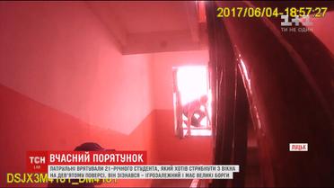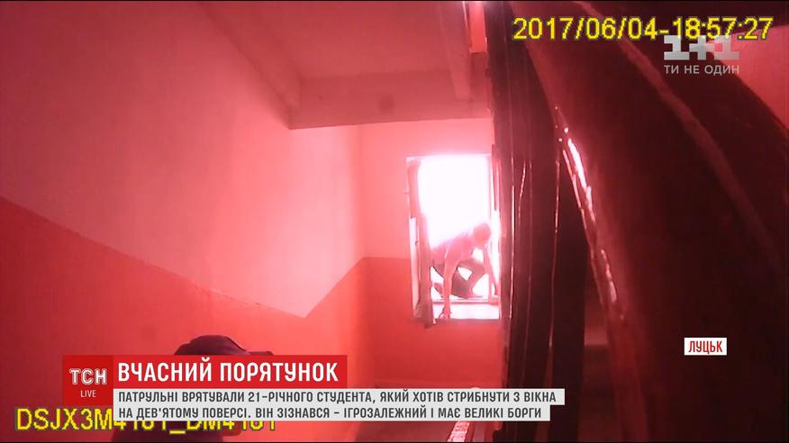 Юнака, що стояв у вікні 9-го поверху, помітили перехожі і викликали копів. Ті майже годину вмовляли хлопця не стрибати, але він був невблаганним. Якоїсь миті патрульні відвернули увагу самогубця і схопили його за руки. Та, навіть, повиснувши в повітрі, він несамовито пручався. Хлопець зізнався, що страждає на ігроманію, а до суїциду його підштовхнули великі борги.