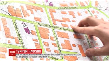 Детальні схеми руху до найвизначніших пам'яток древнього міста вибиті шрифтом Брайля і мають аудіо-супровід. Ідея зробити туризм доступним для незрячих і слабозорих належить місцевим дизайнерам. Виготовили мапу грантовим коштом, друкувати довелося аж у Польщі, адже в Україні, кажуть, немає потрібних технологій.