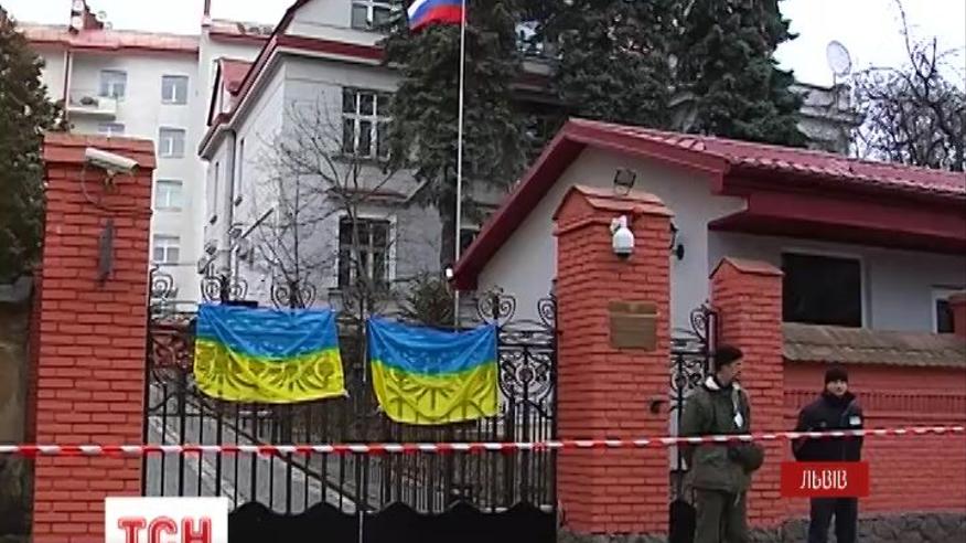 У Львові активісти взяли консульство Росії під посилену охорону