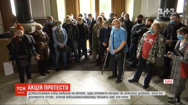 У Львові демобілізовані бійці вийшли на мітинг, щоб отримати обіцяні їм земельні ділянки