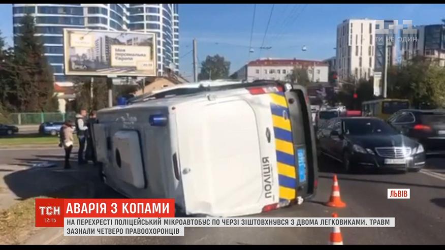 За попередніми даними, легких травм зазнали четверо правоохоронців - це працівники конвойної служби. Як стверджують свідки, поліцейські їхали на червоний сигнал світлофора, без проблискових маячків та сирени, на авто лише були увімкнуті фари та блимало аварійне світло.