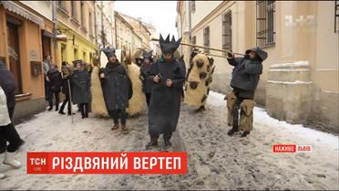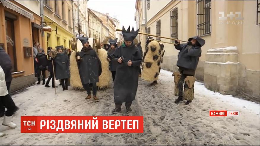 Різдвяний вертеп із гігантськими масками біблійних героїв. У Львові тривають святкування Різдва. Центром міста просто в ці хвилини ходить масовий вертеп.