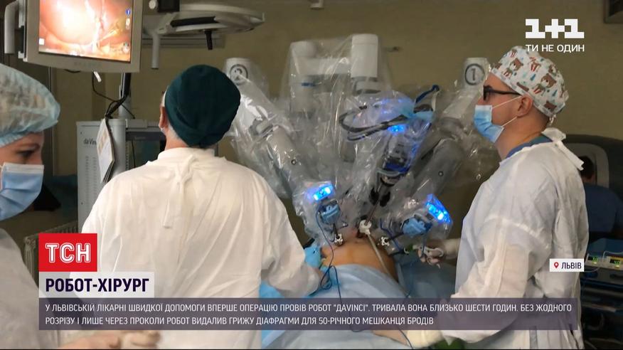 Операція, яку провів робот, вперше відбулася у Львові. Без жодного розрізу і лише через проколи Да Вінчі. Так звати робота, який видалив грижу діафрагми для 50-річного мешканця Бродів. Операція тривала близько шести годин. Увесь цей час хірург був за кілька метрів від пацієнта. Руками Да Вінчі він керував за допомогою джойстиків і 3д зображення на моніторі.