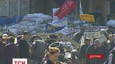 Біля маріупольської мерії, що окупована вже п"яту добу, почали з"являтися "зелені чоловічки", яких раніше не було. Це засвідчують місцеві мешканці.